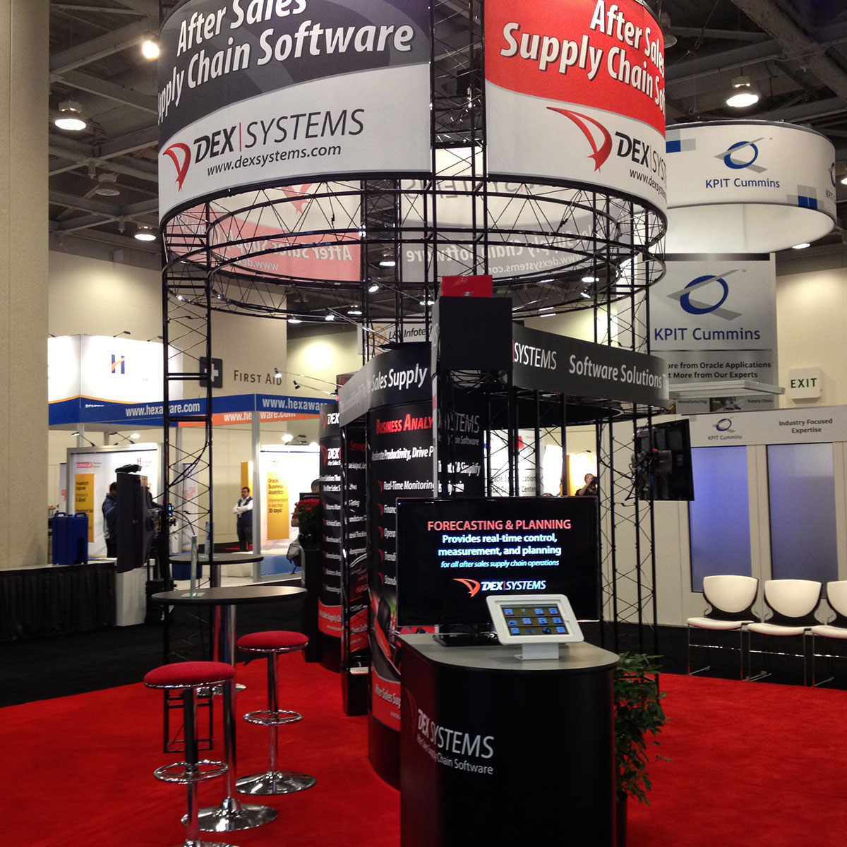 DEX Systems, the software arm of DEX, needed a completely revamped trade show experience for the Oracle OpenWorld trade show in San Francisco. As the Director of Marketing and Design, I was tasked with developing the look and feel of the booth alongside all complimentary graphics and marketing materials from the website, to kiosks, video and hard copy data sheets for the show. The final results tied together the company’s brand with a 20’ x 20’ trade show booth dressed to impress the biggest software giants. The booth was not only pretty but functional. The booth was split into three divisions: Presentations, data, and marketing. The ultimate goal of attending the show and the booth was to feature our software side by side with DEX Systems Partner and customer Cisco Systems.